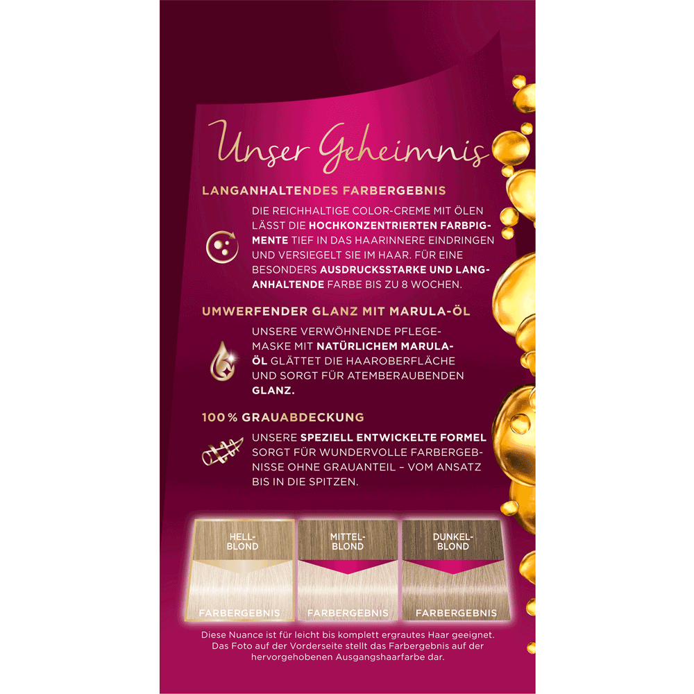 Die reichhaltige Color-Creme mit Ölen lässt die hochkonzentrierten Farbpigmente tief in das Haarinnere eindringen und versiegelt sie im Haar. Für eine besonders ausdrucksstarke und langanhaltende Farbe bis zu 8 Wochen.