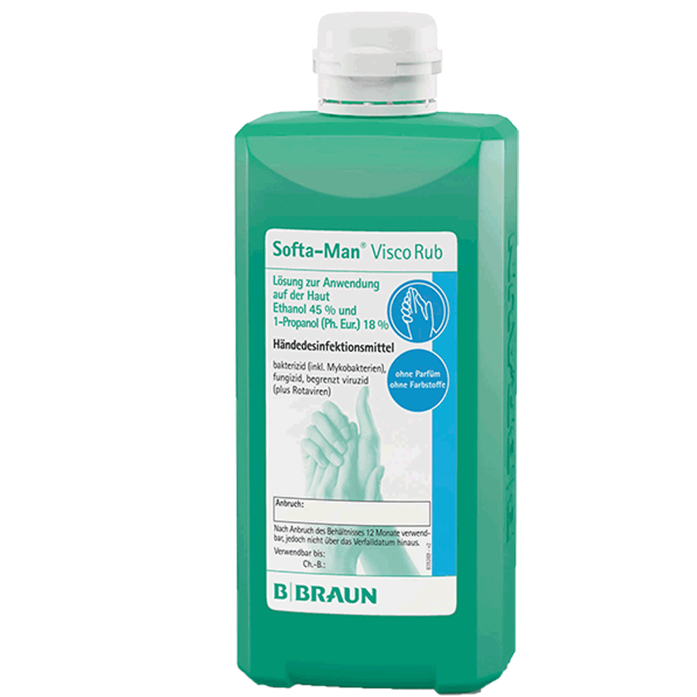 Das innovative B BRAUN Softa-Man® ViscoRub Händedesinfektionsmittel bietet optimale Pflege und Desinfektion in einem Produkt. Basierend auf einer speziellen Wirkstoffkombination aus Alkoholen wirkt es effektiv gegen Bakterien und Pilze. Die gelartige Formulierung ist zudem sehr hautverträglich sowie farbstoff- und parfumfrei. Mit einer Einwirkzeit von nur 30 Sekunden sorgt das Mittel für eine schnelle und zuverlässige Desinfektion der Hände.