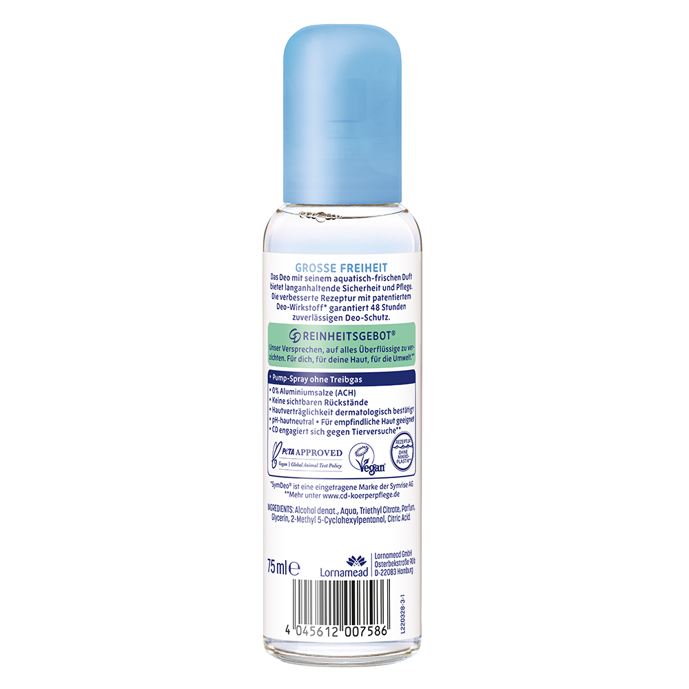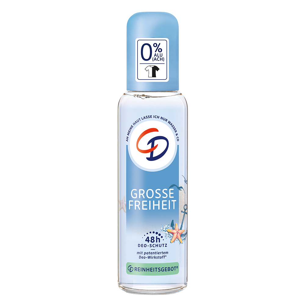 Der sanfte CD Deo Zerstäuber Große Freiheit mit 0% Aluminiumsalzen und patentiertem Deo-Wirkstoff* - 48 Stunden zuverlässiger Schutz und langanhaltende Frische.