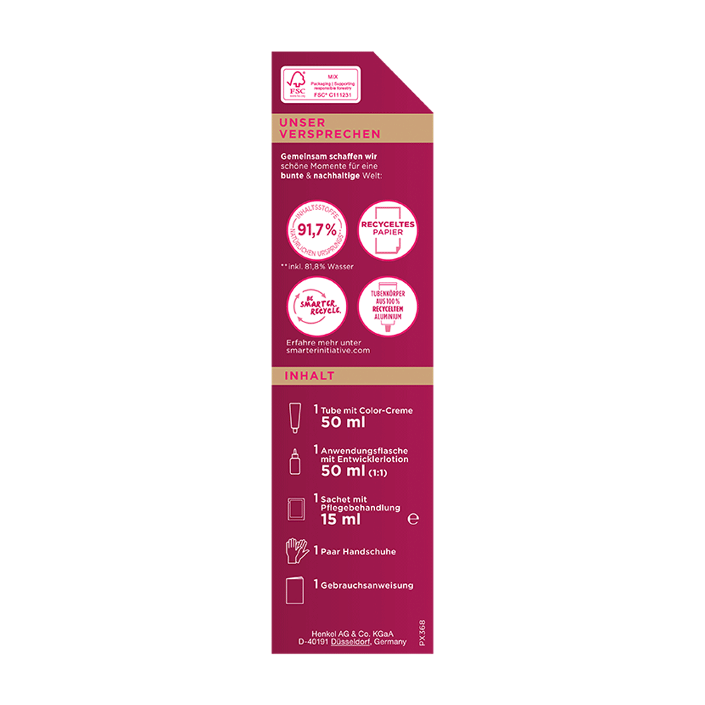 Nach der Coloration wird das Haar dank der Pflegebehandlung tief mit Feuchtigkeit versorgt und hinterlässt ein seidig-weiches und gesundes Haargefühl.