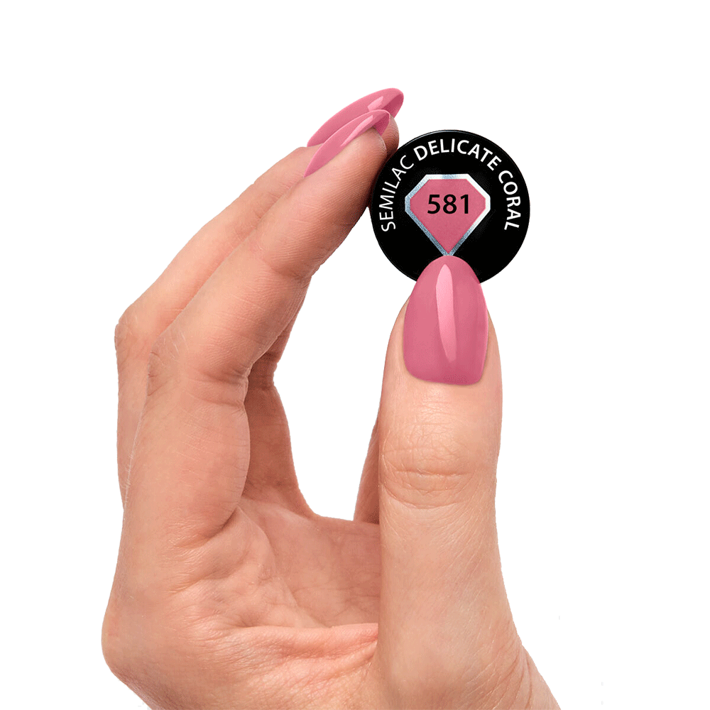 Eine dünne Schicht Semilac Farblack auf die ausgehärtete Semilac Base Schicht auftragen. Nicht direkt auf die Nagelplatte auftragen. Für einen zufriedenstellenden Look kann die Anwendung von Semilac Farblack wiederholt werden. Zum Abschluss des Nageldesigns Semilac Top auftragen.