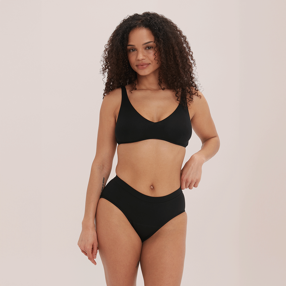 Erleben Sie Sicherheit und Komfort während Ihrer Periode mit der schwarzen snuggs Basics Periodenunterwäsche in Größe S. Diese innovative Unterwäsche bietet dank ihres hohen Absorptionsvermögens eine sichere Aufnahme von Flüssigkeit, vergleichbar mit bis zu fünf Tampons. Die Oberfläche trocknet schnell, während die innere Schicht aus 100 % Baumwolle mit ihrer superabsorbierenden Eigenschaft begeistert. Auch an langen Tagen bietet sie zuverlässigen Schutz ohne Auslaufen für acht bis zwölf Stunden. Die dünnen und leichten Materialien fühlen sich an wie normale Unterwäsche, ergänzt durch antibakteriellen Schutz zur Geruchsminderung. Die wiederverwendbare Periodenunterwäsche von snuggs, ist mit seiner gesamten Wertschöpfungskette inklusive der Rohmaterialien und Produktion in der EU. Bezogen werden die Stoffe aus Italien und Österreich und finalisiert werden die Artikel in der Tschechischen Republik.