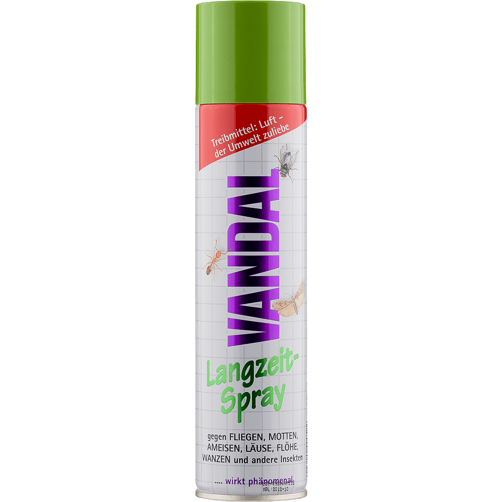 Beschreibung: Langzeit-Spray gegen Insektenbefall wirkt sofort und wochenlang ohne Treibgas der Umwelt zuliebe VANDAL Langzeit-Spray ist ein Insektenspray, das fliegendes, kriechendes und saugendes Ungeziefer sofort und dauerhaft bekämpft. Ob Fliegenplage, Mottenbefall, Ameisenstraße, stechende Flöhe und Wanzen, Schlupfwinkel von Spinnen, Kakerlaken oder Silberfischchen - die betroffenen Flächen oder Textilien kurz mit dem Spray besprühen reicht, um dem Gewusel ein Ende zu bereiten. Mit dem Treibmittel Luft, der Umwelt zuliebe.