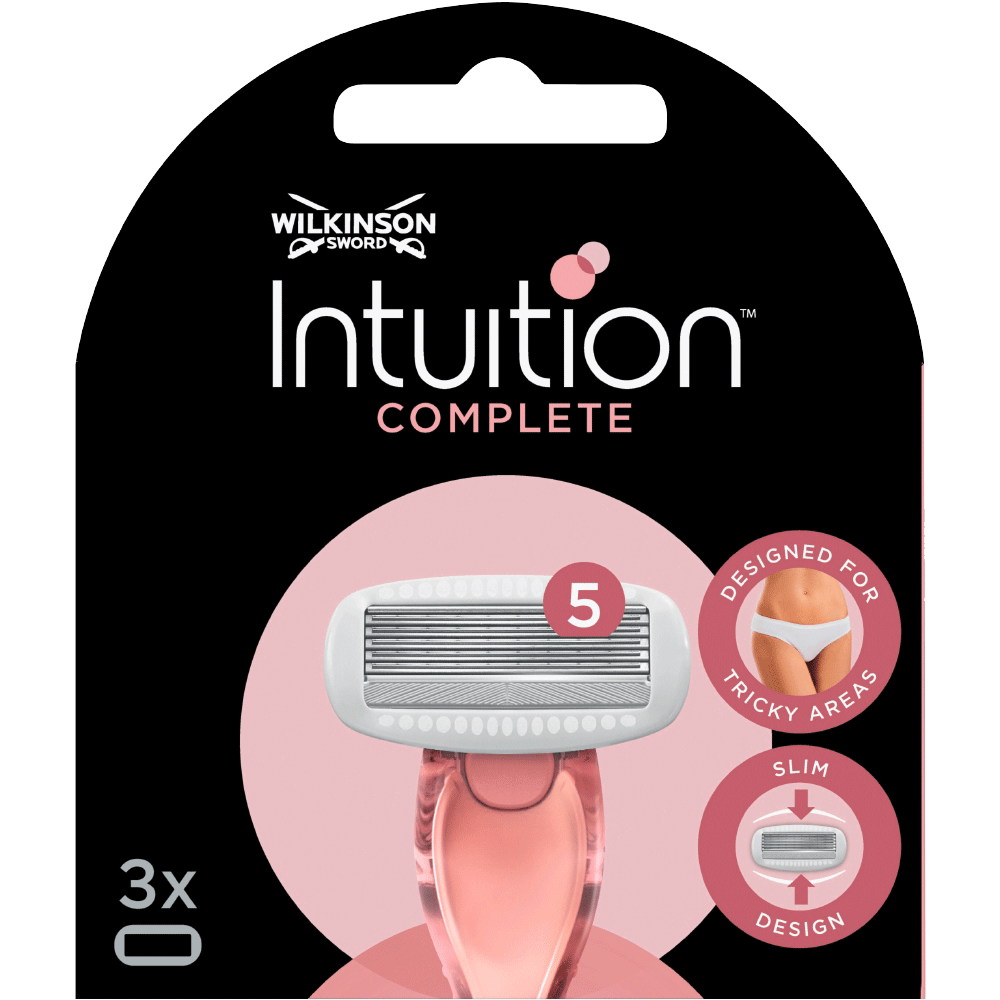 Du liebst samtweiche Haut, du fühlst dich ohne Härchen wohler oder frischer? Entdecke unseren Complete von Intuition mit 5 Skin-Perfect-Klingen und Skin-Protect-Gel: Er rasiert besonders gründlich und sanft – dank des schlanken Klingenkopfs erreichst du auch schwer erreichbare Zonen wie den Intimbereich oder die Achseln. Der Schutzfilm der Gel-Depots um die Klingen sorgt für ein sanftes Gleiten bei der Rasur und hilft, Hautirritationen zu vermeiden. Weil jede deiner Zonen eine gründliche Rasur verdient!